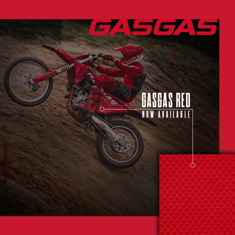 Introducing our new GasGas red seat cover by Motoseat. This latest addition to our lineup is designed to closely match GasGas red and complement the bold spirit of GasGas motorcycles. You can now customize your seat across all of our styles, from solid traction, two-tone, ribbed traction, or stripe traction. It's your colors, your choice!